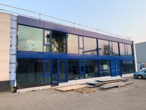 Zo heeft de afgelopen weken de focus van de werkzaamheden grotendeels aan de schil van het pand gelegen. Hierbij hebben we de oude gevelbeplating en gasbetonelementen verwijderd waarna de nieuwe vliesgevel geplaatst kon worden.