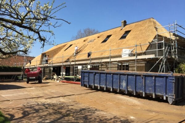 Na het afronden van de sloopwerkzaamheden aan de boerderij in Schiedam, staat het plaatsen van de geïsoleerde dakplaten op de planning. In verband met de beperkte as last en breedte van de toegangsweg naar onze bouwplaats, worden de dakplaten overgeladen op een platte kar van een behulpzame buurman. Deze zal de laatste kilometer met de…
