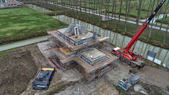 Tussen de foto van de fundering en de foto met de dakkap zitten slechts 13 werkdagen…